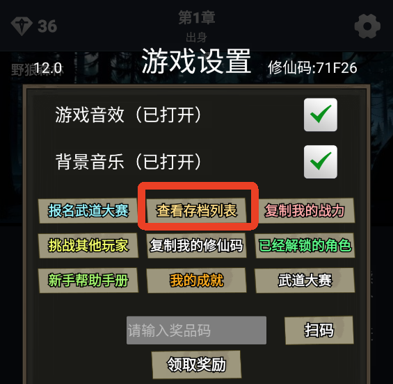 2、使用后可以在设置页面中读档。