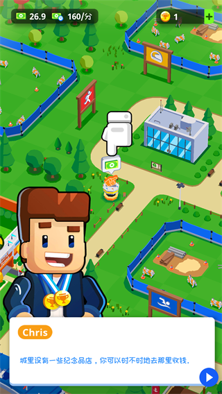 1、管理资源以最大化收入并建造新景点。现在建造你自己的体育城。