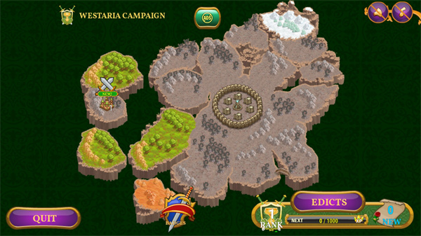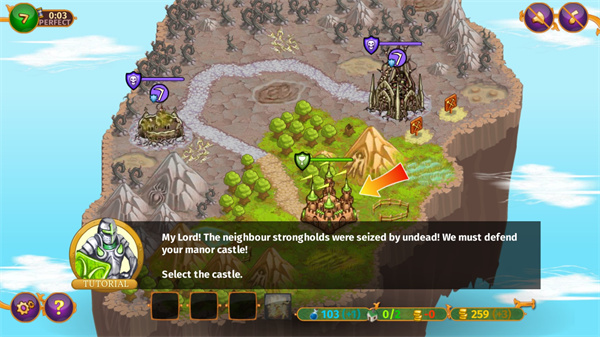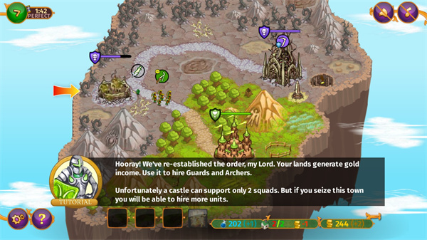 以关卡模式开始,玩家在游戏中将领导3个国家之一,每个国家有5种小队,3种要塞和魔法。在这期间玩家需要召集各路兵马,组建属于自己的军队与其他玩家进行对战,在开始游戏之前玩家需要规划好路线开始挑战,而一个好的阵容往往可以取到意想不到的效果,完美利用阵容去消耗敌人有生力量,自由征服与冒险中最终成为国王。