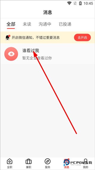 5、进入消息版块,可查看与企业HR的沟通记录,及时回复相关咨询;
