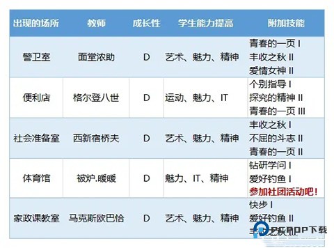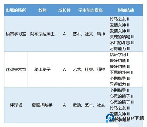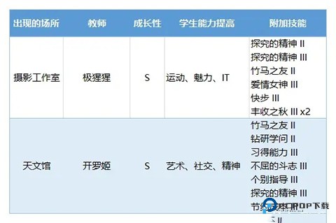 首先需了解老师的出现场所、成长性、对学生能力的提升效果以及附加技能,具体详情如下: