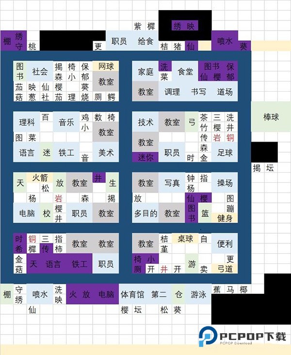 6、紫色部分为纯粹填补空白的设施,可根据个人喜好选择修建或不修建,以上就是口袋学院物语3的景点布局攻略。
