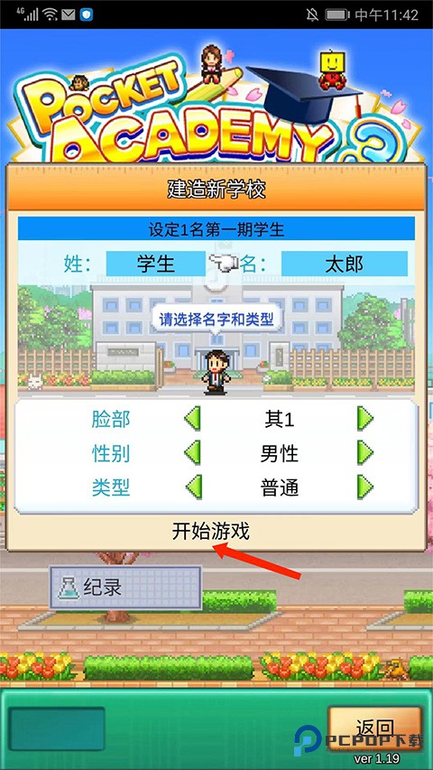 3、接着确定好学生的名字与类型,选择【开始游戏】选项,正式开启校园经营之旅;