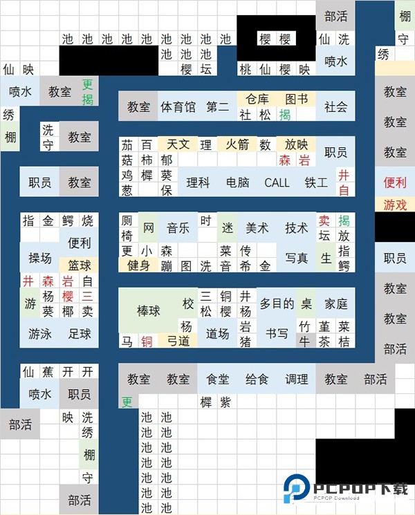 3、黄绿底色的设施需特别注意摆放朝向,灰底设施无相性限制,可随意挪动;游戏中共设十个部活,每个部活有7个外校社团需击败(实际只需同时保留3个部活即可,击败一个后拆除更换下一个,毕竟学生仅有48人,十个部员可轻松应对,修建过多反而会增加管理麻烦);