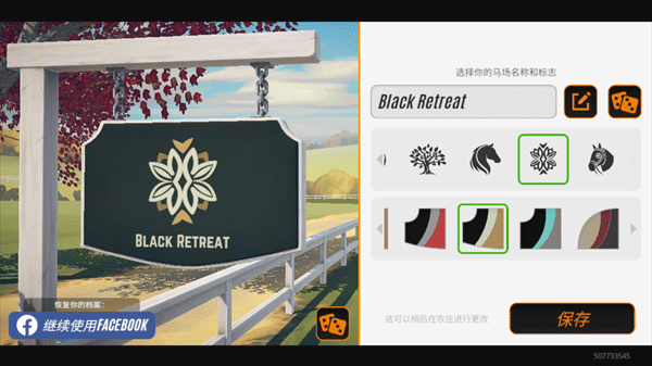 3、需要为自己的马场取一个名字,同时也可以设置马场的标志,如果还没有想到合适的名字也没关系,可以选择随机取名,稍后在农庄可以进行更改