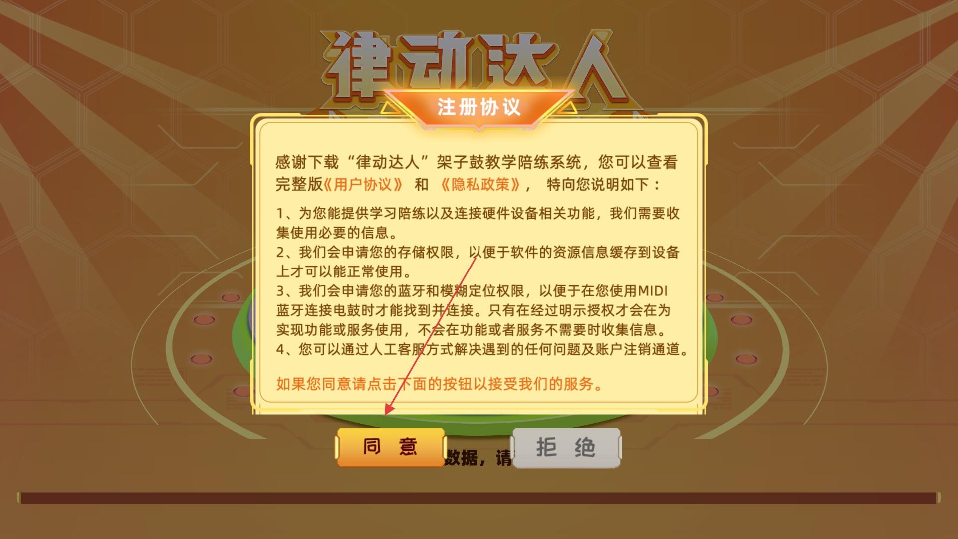 3、进入注册页,填资料后勾选协议,点完成注册,登录律动达人,开启架子鼓陪练。
