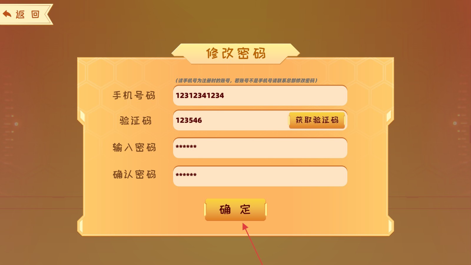 3、在修改密码页面,输入【手机号码、验证码,设置并确认新密码】。
