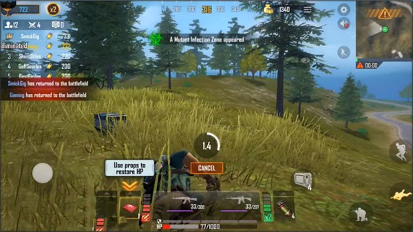 5、玩家需要在地图上不断移动,躲避敌人的攻击,并与其他玩家展开激烈的火力对抗。游戏区域会逐渐缩小,迫使玩家在规定时间内移动到安全区域。这样的限制会导致玩家之间的接触越来越频繁,战斗也变得更加紧张刺激。