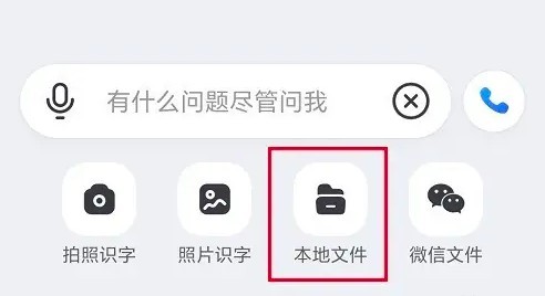 2、点击本地文件图标(如果文件在微信,就点击右侧的微信文件)