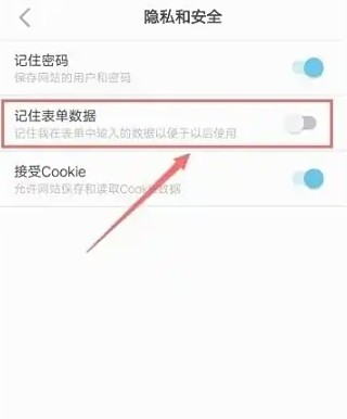 4、再勾选“记住表单数据”栏目右侧按钮进行关闭