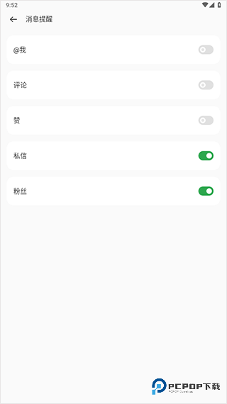3、进入消息提醒页面后,关闭自己想要停用的通知类型即可。