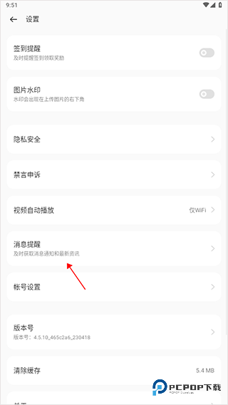 2、在设置页面下方,找到并点开“消息提醒”选项;