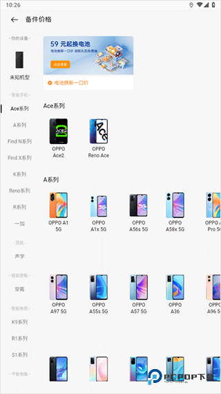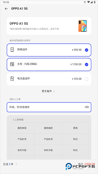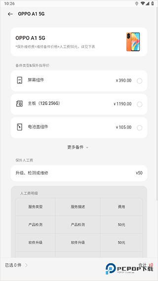 4、任意点击一款机型,即可显示该机型对应的各类配件价格;