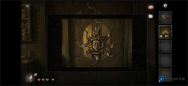 再次切换回李斯特视角,返回恶魔雕像场景,雕像的2个链子对应2个角,2个翅膀对应左右两侧,按照数字1-8的顺序依次点击,完成解谜;