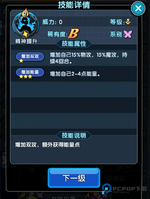 ④精神提升(2费,增加双攻15%,增加能量2-4点。)这个技能能让你有几率在第二回合,放出5-6费的高费奥义,从而缩短伊芙利特一轮技能释放的流程,加快输出节奏。