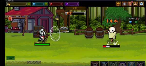 2、角色会自动射击,消灭它们;