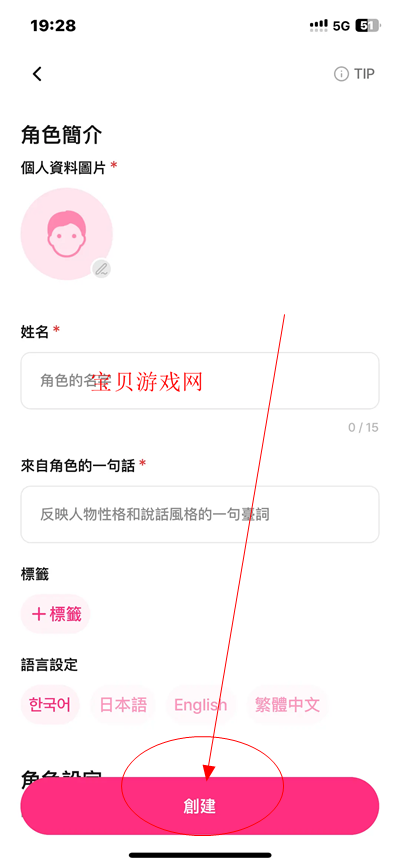 或者输入头像,名称,以及角色关键信息,人物性格特点描述,创建人物角色