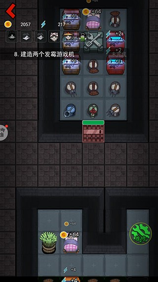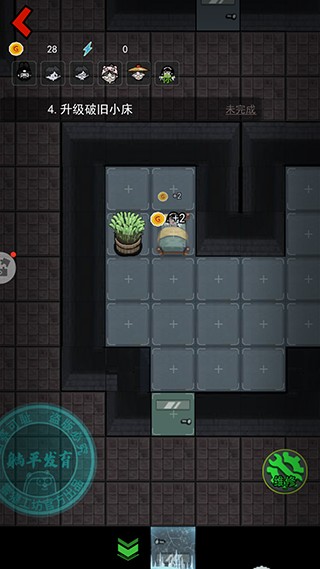 先提升床的等级和建造两个炮台,因为这个时候猛鬼还没有到来,所以优先提升床铺的等级快速获取金币;然后再去提升门的等级,之后床铺的等级可以暂停一下,优先提升门的等级,否则很容易被猛鬼突破,提升到需要电力的时候再去商店购买游戏机,否则会很容易被猛鬼突破。
