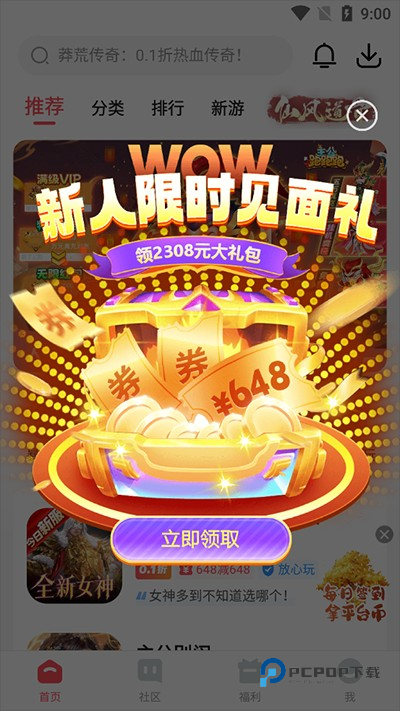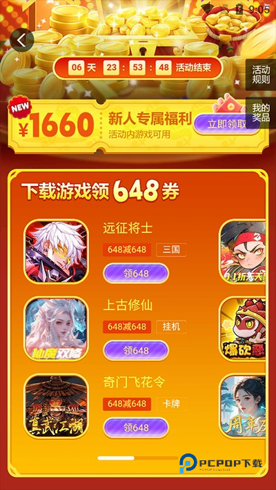 4、还有海量新人福利,下载游戏领648券