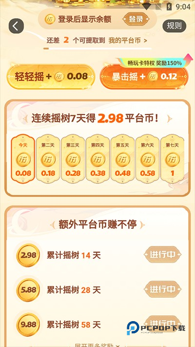 2、每日签到可以领取平台币,平台币可在3387下载的游戏中充值抵扣。