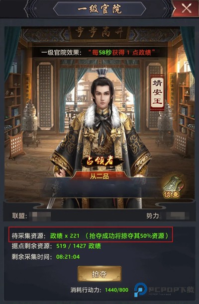 在京城活动中,占领各级资源点需要消耗不同数值的行动力,所以冲榜活动开始前,大人记得攒满行动力哦~