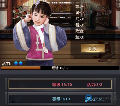 这样的子嗣虽成年速度快,但由于升级提升的属性低,成年后普遍是童生和秀才。这时要想获得更高身份的子嗣,便可以通过送子嗣游学来提升属性,快速达到状元、榜眼等身份属性要求。