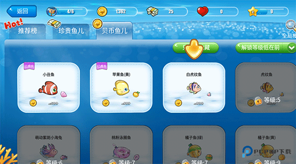 稀有鱼种解锁方式:随着游戏时长不断累积,玩家等级逐步提升后,可前往游戏商城逐步解锁更多稀有、高颜值的鱼种,慢慢丰富自己的水族箱品类,打造更丰富的水下生态。