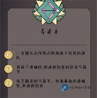 一级弓兵不建议上场,命中率感人,当炮灰还可以,被贴脸只能靠队友/拿剑的队长(弱)/弓射解决,自保能力第二,是三个兵种升级提升最明显的