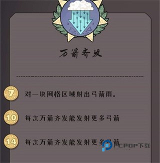技能是朝天射箭在一个格子里,着箭点会变前,在敌人经过的地方有奇效