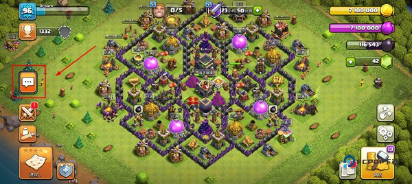 1、首先打开部落冲突百度版,进入游戏后,点击左侧聊天按钮。