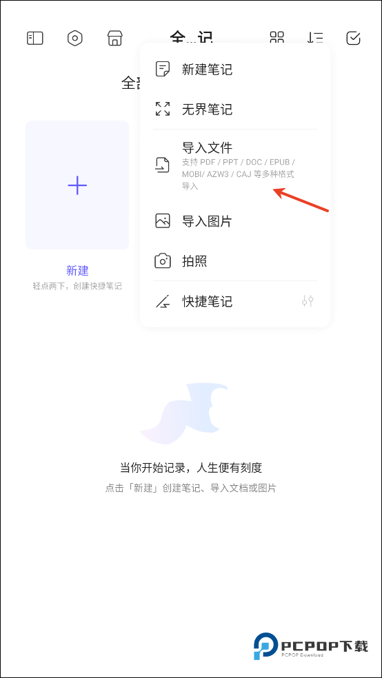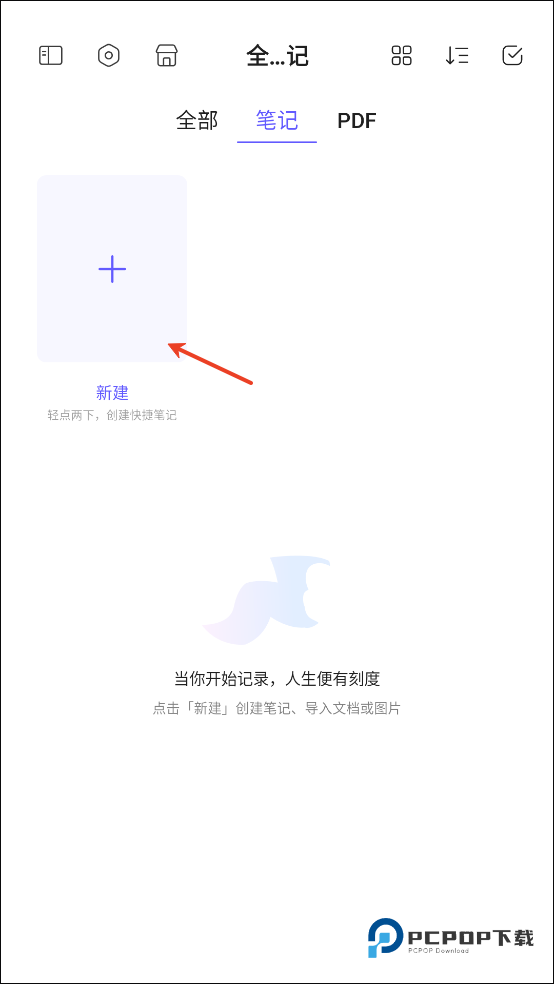 1、打开软件之后点击新建笔记。