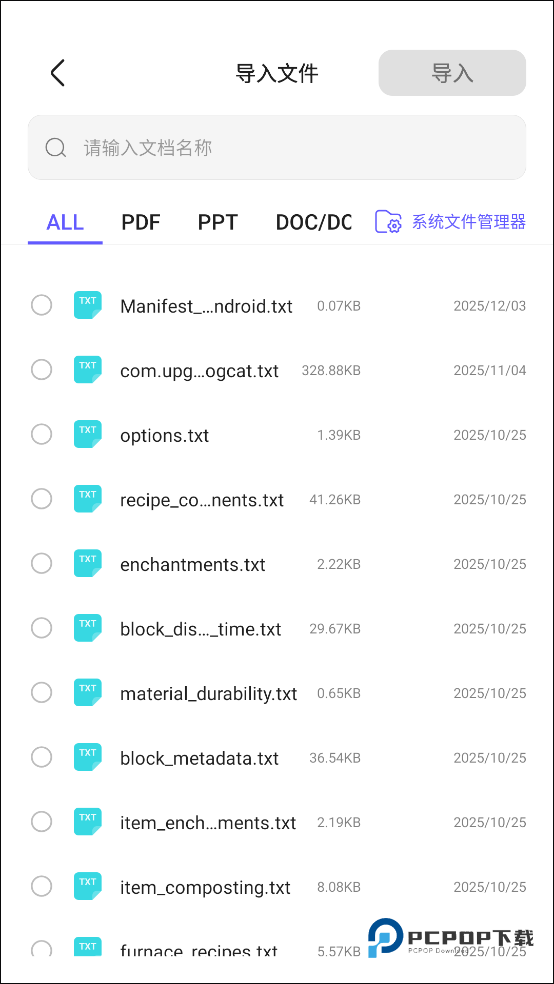 2、在弹出的选项中点击导入文件。