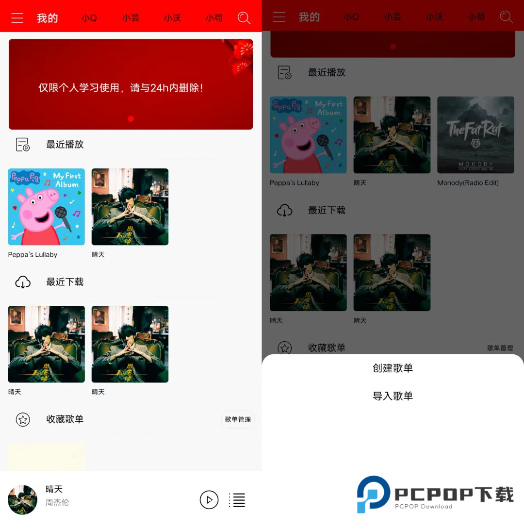 软件内拥有小Q、小芸、小沃和小苟四大平台的音乐资源,包括各种流行歌曲、经典老歌、独家首发等等。