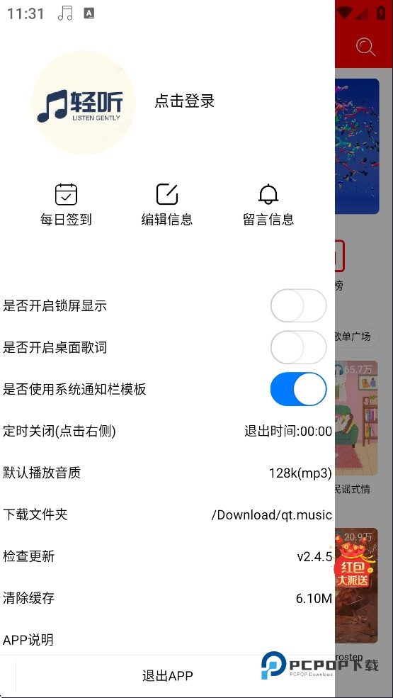 如果需要听无损音质,可以在设置里面修改默认播放音质,里面提供了三种音质,可根据需求自行选择。另外,轻听音乐还内置了强大的MV功能,让你边看边听。
