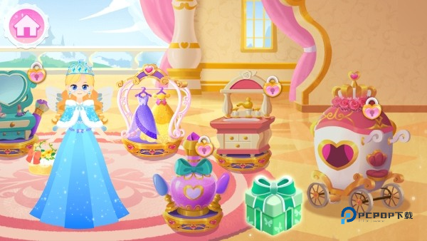 2、游戏内有多种玩法,点击衣柜可给公主换装,点击梳妆柜可给公主化妆。