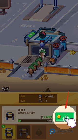4、如果想要提高洗浴效率,可以点击升级提升器械工作效率;