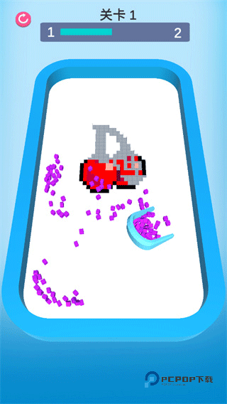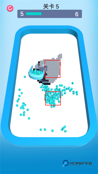 2、通过不断的点击操作,收集散落方块填补;