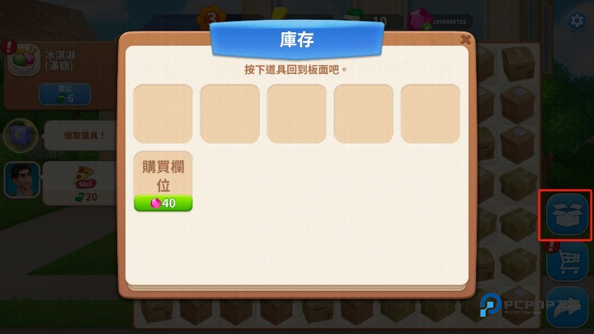 6、现在金钱不够的话,还是回到这里进行合并,当画面上的区域不够用的时候,可以将任意物品移动到这个这个位置上。