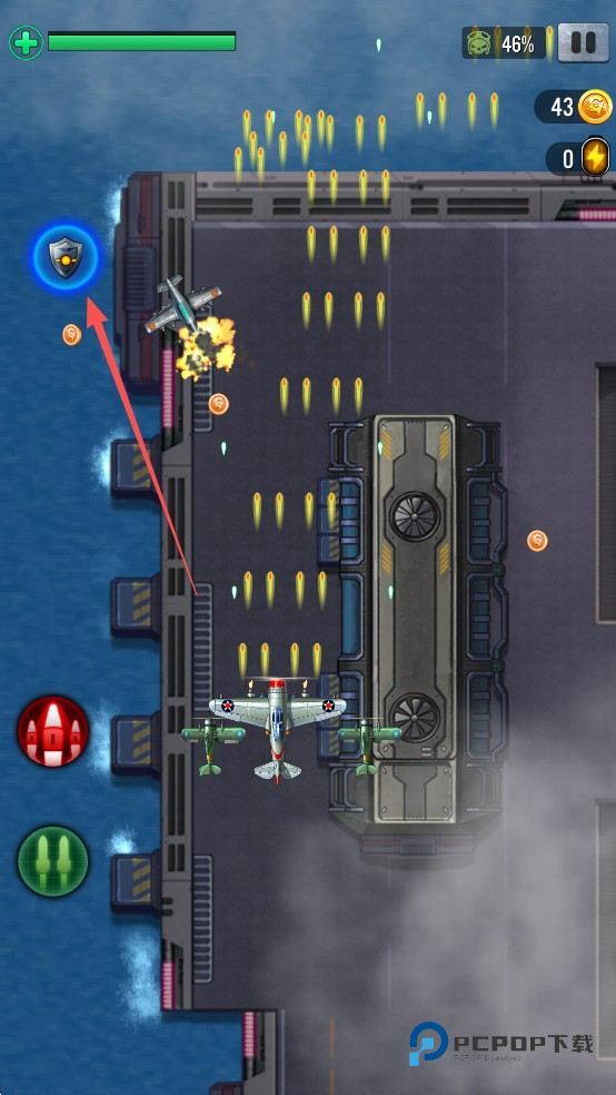 3、收集掉落的道具,增强战机的能力。