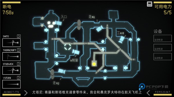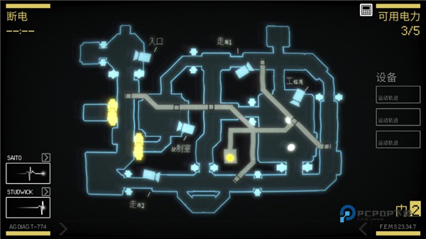 6、关闭一个装置将消耗电力,开启后可恢复最多拥有5个单力,地图中黄色就是已经关闭的装置。