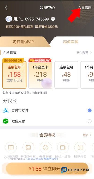 3、来到VIP会员中心后,点击右上角的会员管理选项