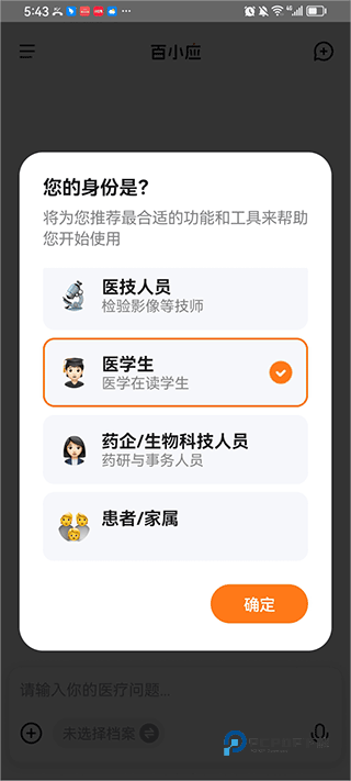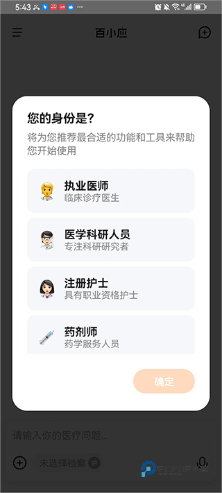 1、打开登录百小应后,选择自己的角色,比如可以是执业医师、护士、医学研究人员等