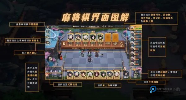 步骤3:当有三个相同的麻将棋时,可以点击“碰”或将麻将棋拖至棋盘,合成出更高级的麻将棋。高品质、高等级麻将棋及羁绊效果是制胜的关键。