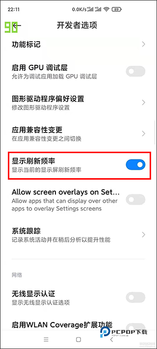 4、然后开启显示刷新频率即可。