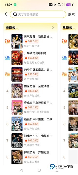 2、点击搜索栏,可以看到各大热搜榜单,用户可以通过搜索来查找自己喜欢的短剧