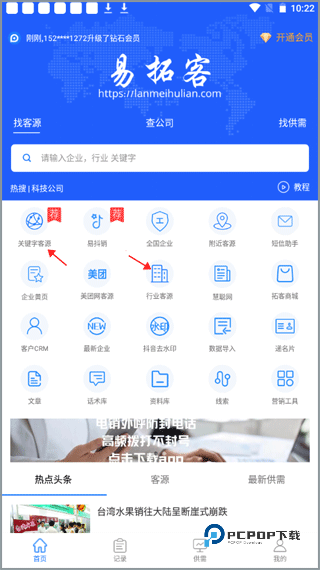 1、软件有很多种找资源的方式,我这儿主要讲其中两个,一个是关键字客源,一个是行业客源。