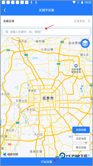 3、软件这时候就会根据你所在的位置搜索你周边的关键字资源,采集到后就会罗列到地图上方便查看。