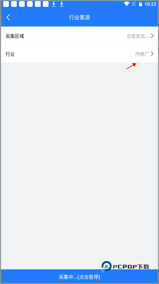4、点击行业客源,就是选择相应的行业来找资源,然后“开始采集”。