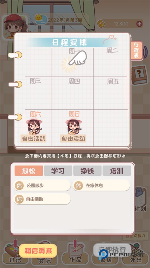 1、进入游戏安排一周中的计划。
