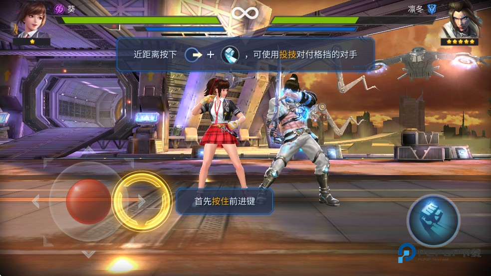 5、按住向前的方向键的同时点击进攻键,可以使用投技对付格挡的对手